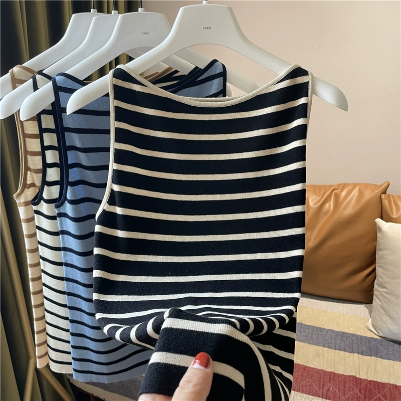| nameOriginal | One-line collar striped knitted vest for women Korean style commuting style wool outer wear with chic blue suspender top |