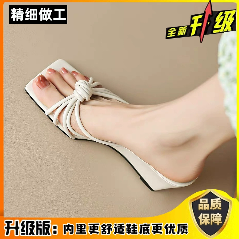 | nameOriginal | One-line fairy style wedge heel apricot open toe slippers |