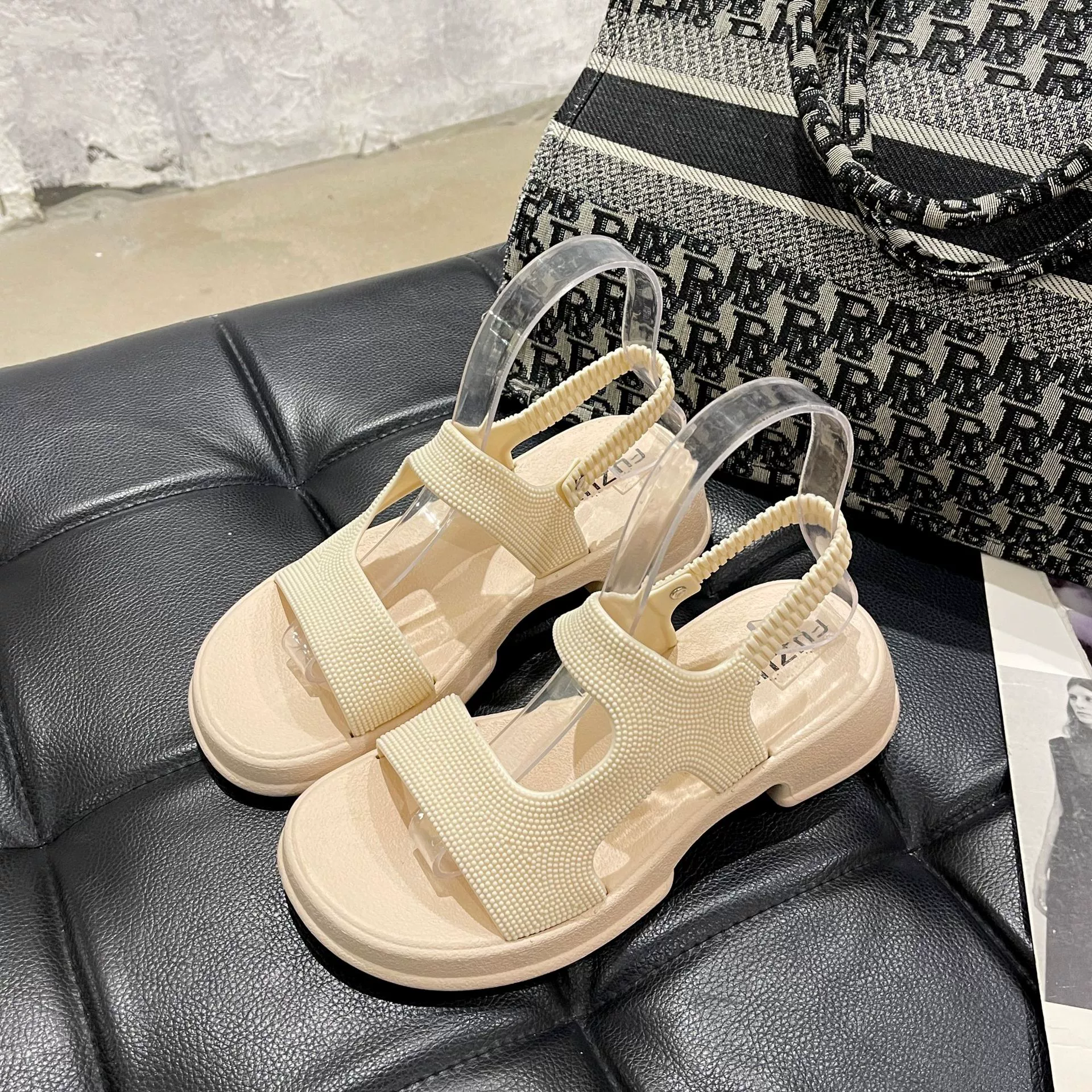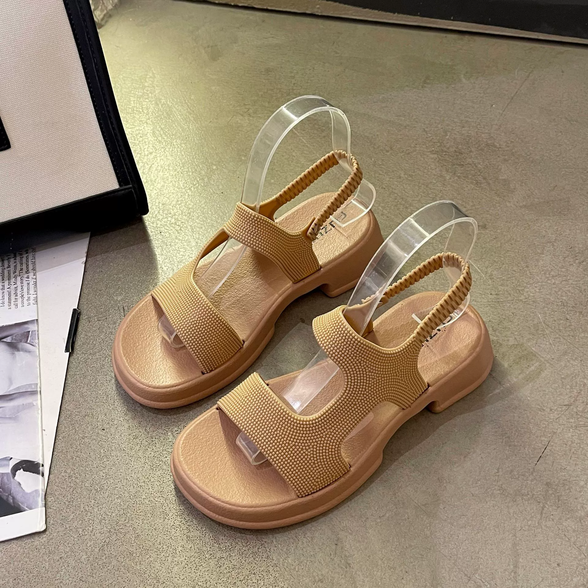 One-line fashionable and casual round toe elastic strap Roman sandals