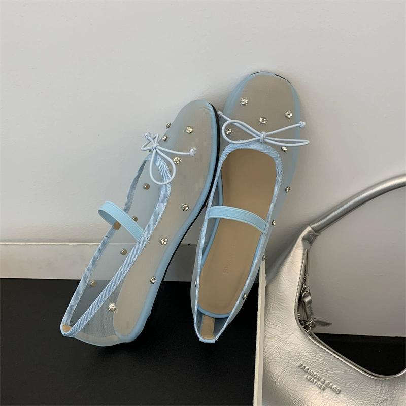 | nameOriginal | One-line mesh fashionable bow flat shoes with rhinestones |