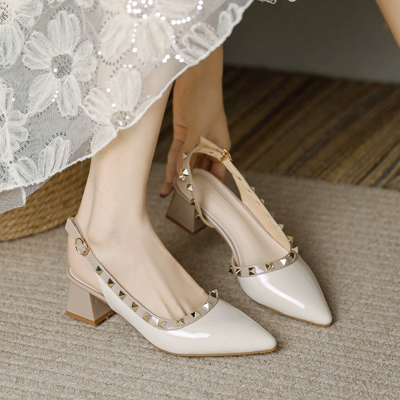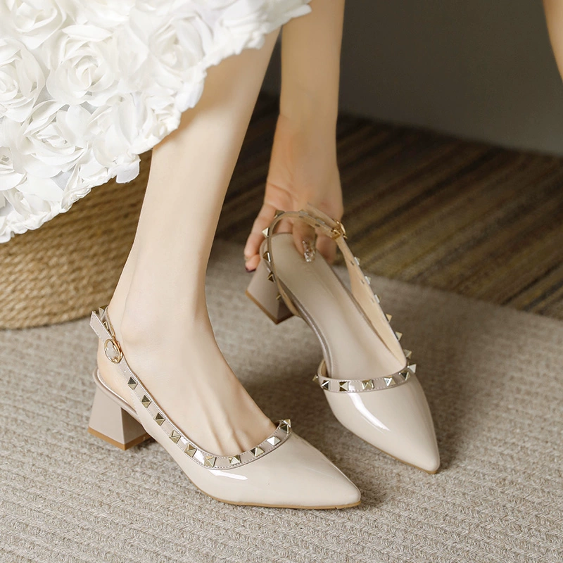 One word nude color 2024 Summer Baotou high -heeled shoes