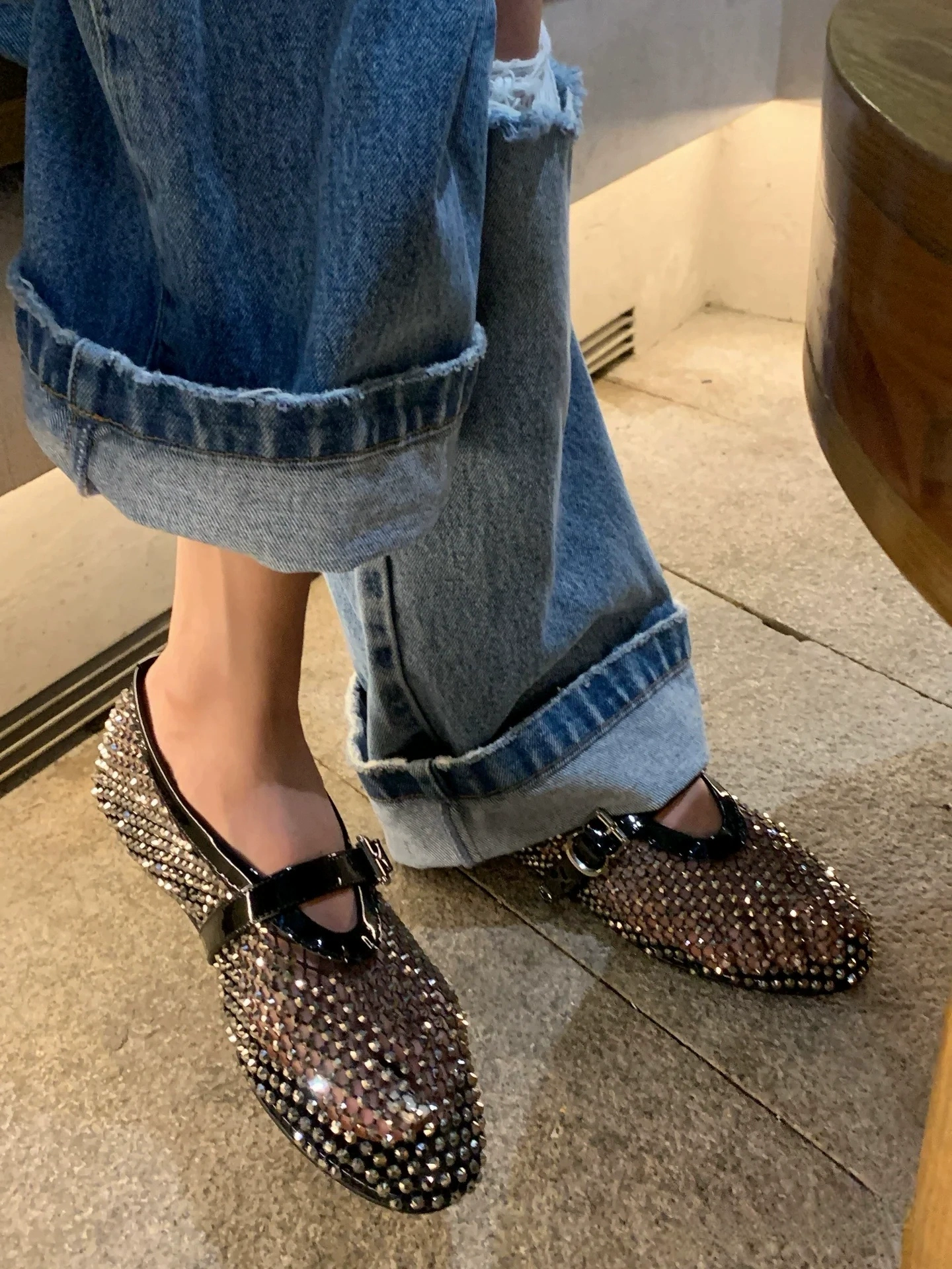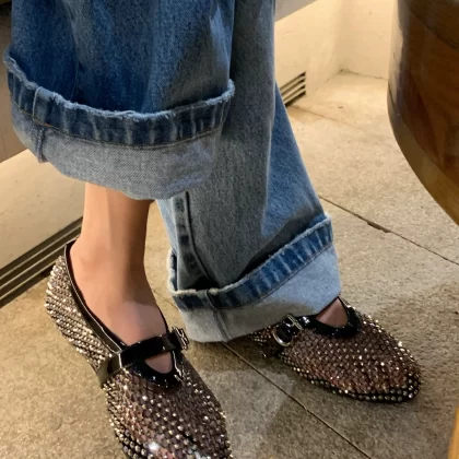 | nameOriginal | One-line summer diamond round toe niche hollow shoes |