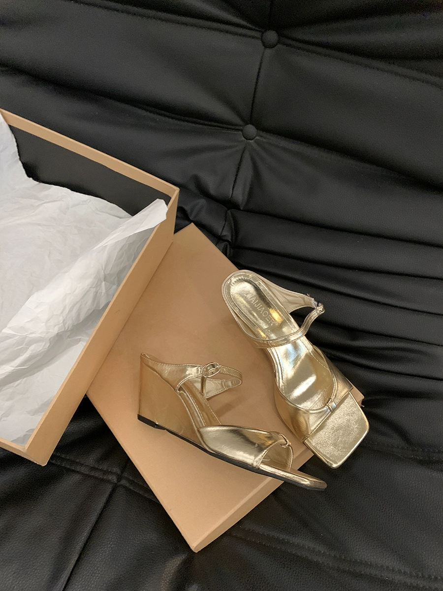 | nameOriginal | One-line wedge heel heightening silver fashionable and beautiful sandals |