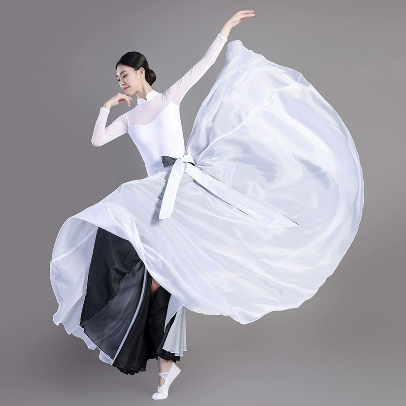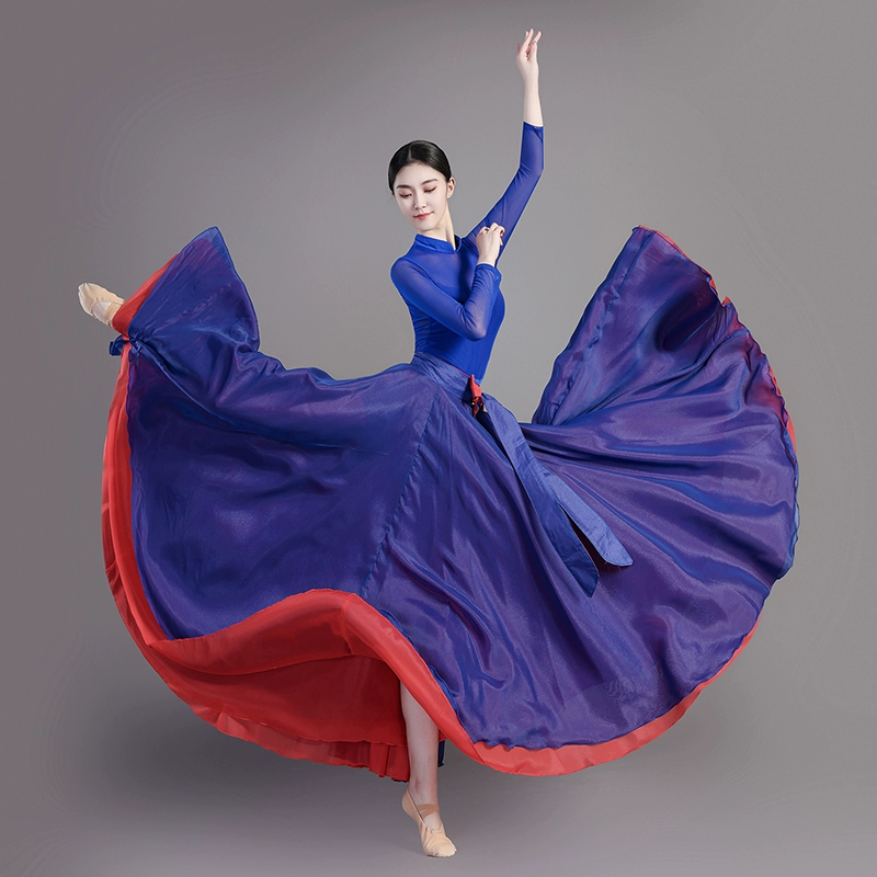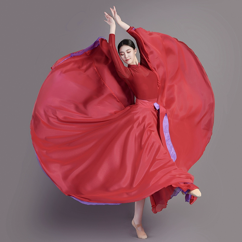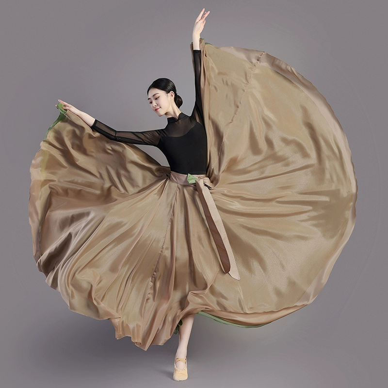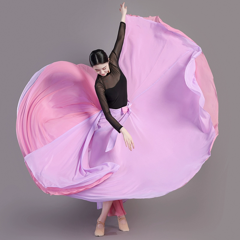 One-piece dance skirt with both sides wearing Chinese ancient style dancing gauze skirt for adult 720-degree classical dance half-body big hem skirt