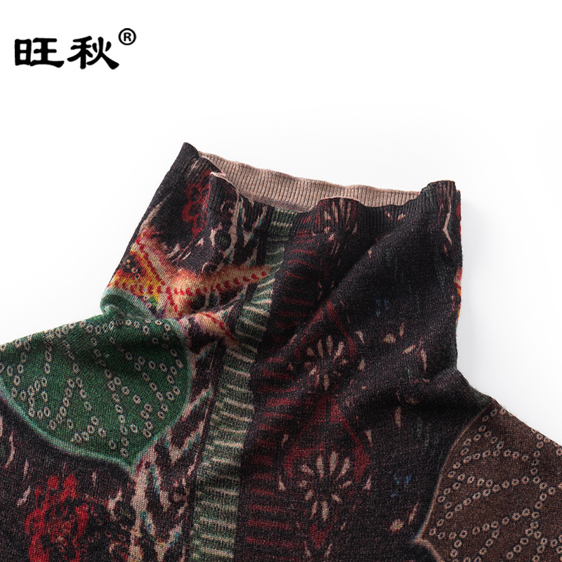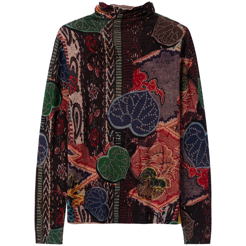 One-piece delivery 100 pure wool sweater women's thin water-soluble wool printed sweater pile collar top MD806