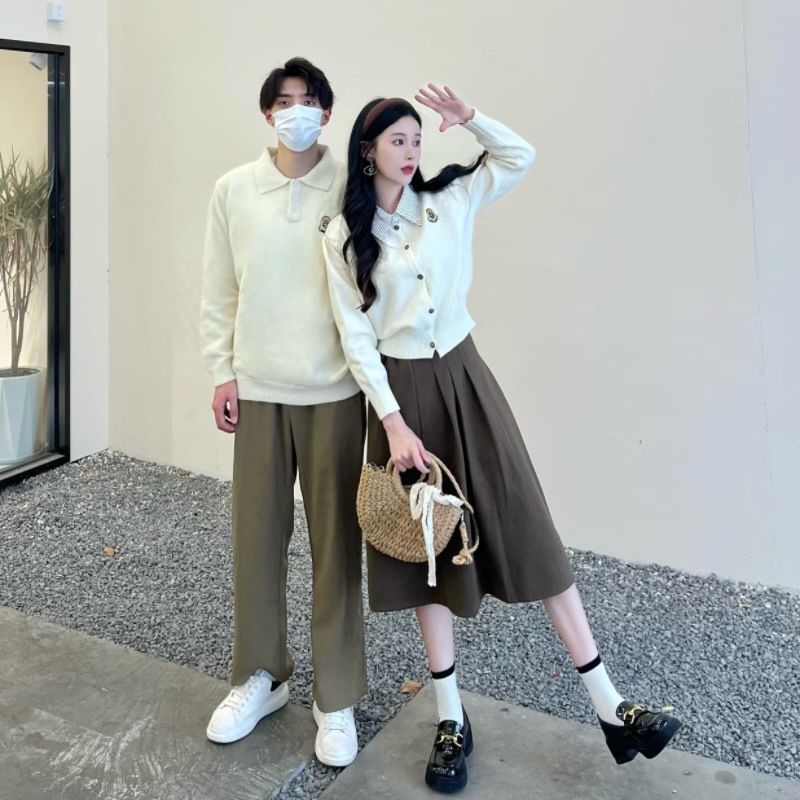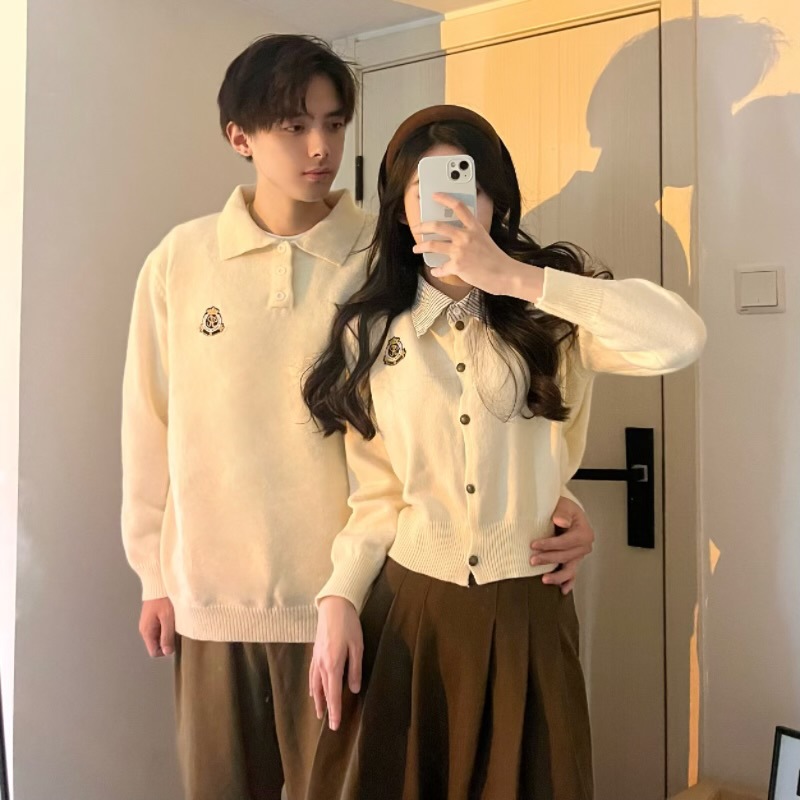 One-piece delivery 2023 autumn and winter knitted embroidered stitching couple sweater