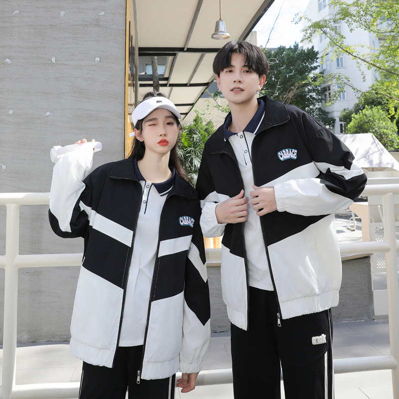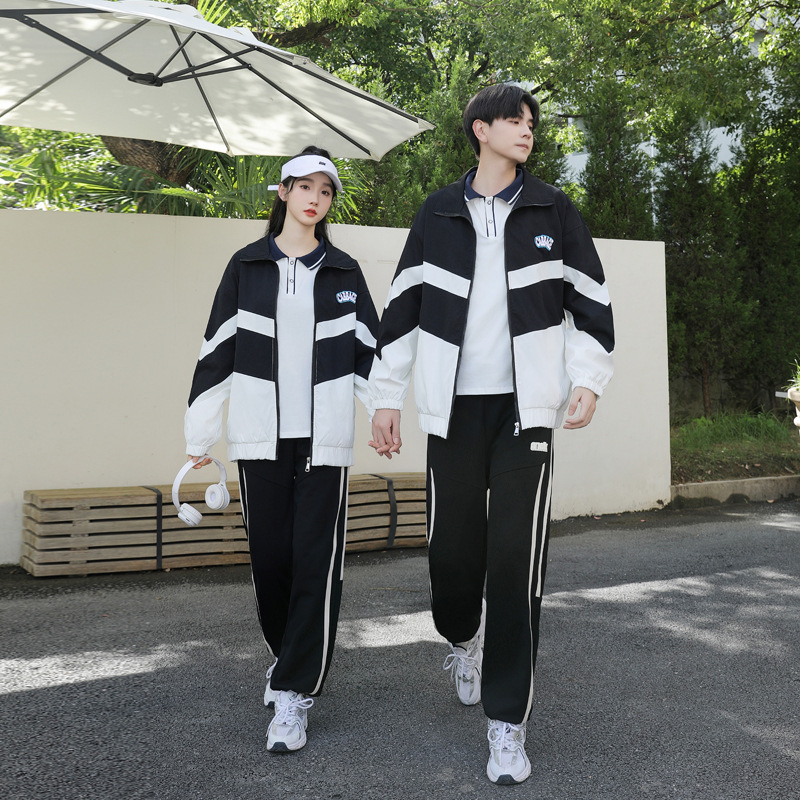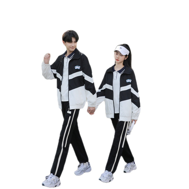 One-piece delivery 2023 real shot couple casual spring and autumn three-piece long-sleeved jacket student suit School uniform class uniform
