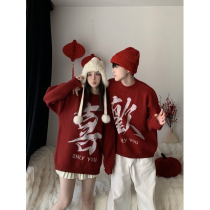 | nameOriginal | One-piece delivery 2023 real shot couple clothes autumn and winter New Red New Year happy wedding Christmas long sleeve all-matching |
