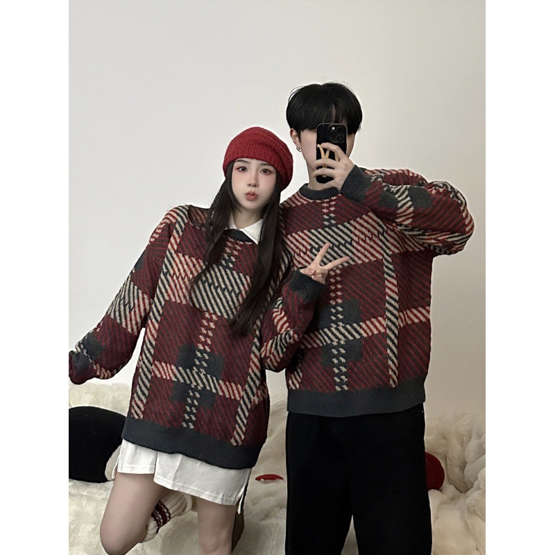 | nameOriginal | One-piece delivery 2023 real shot couple clothes autumn and winter New Year Spring plaid sweater sweater long-sleeved dress New Year's Day Net |