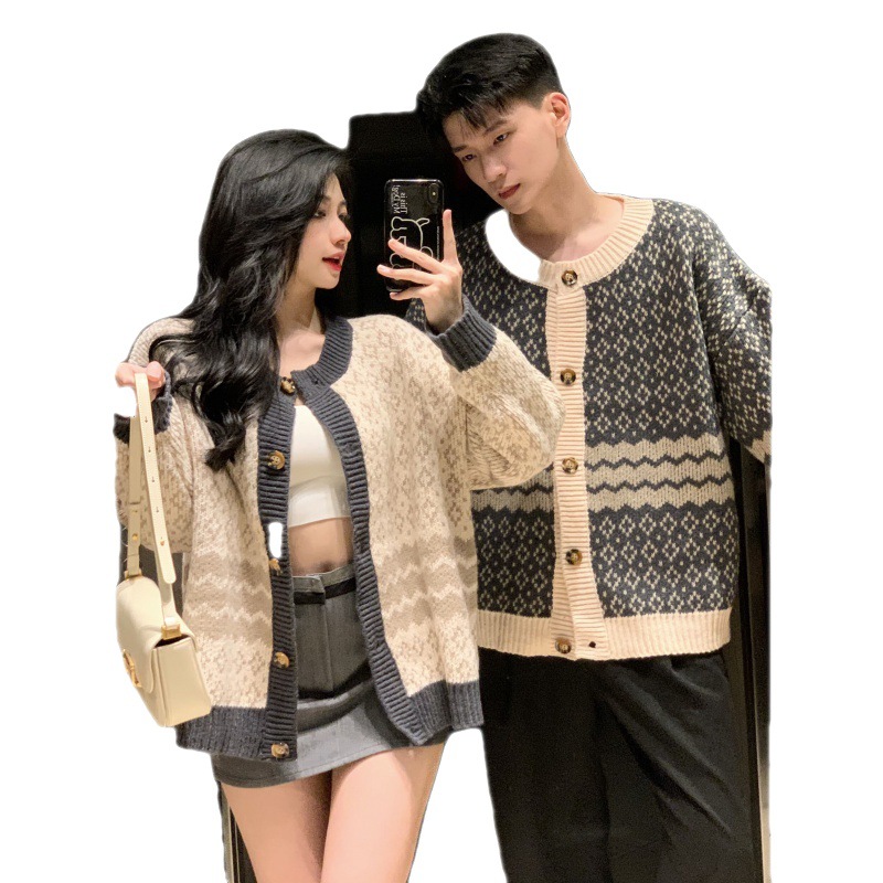 | nameOriginal | One-piece delivery 2023 real shot couple wear autumn and winter new online celebrity temperament same cardigan student class clothes long sleeve |