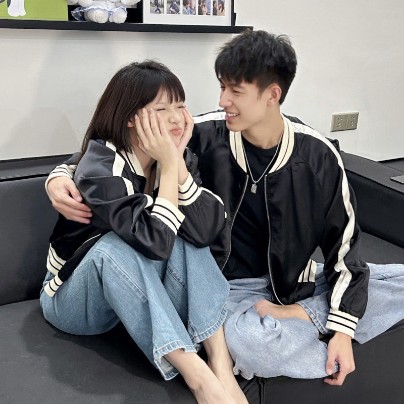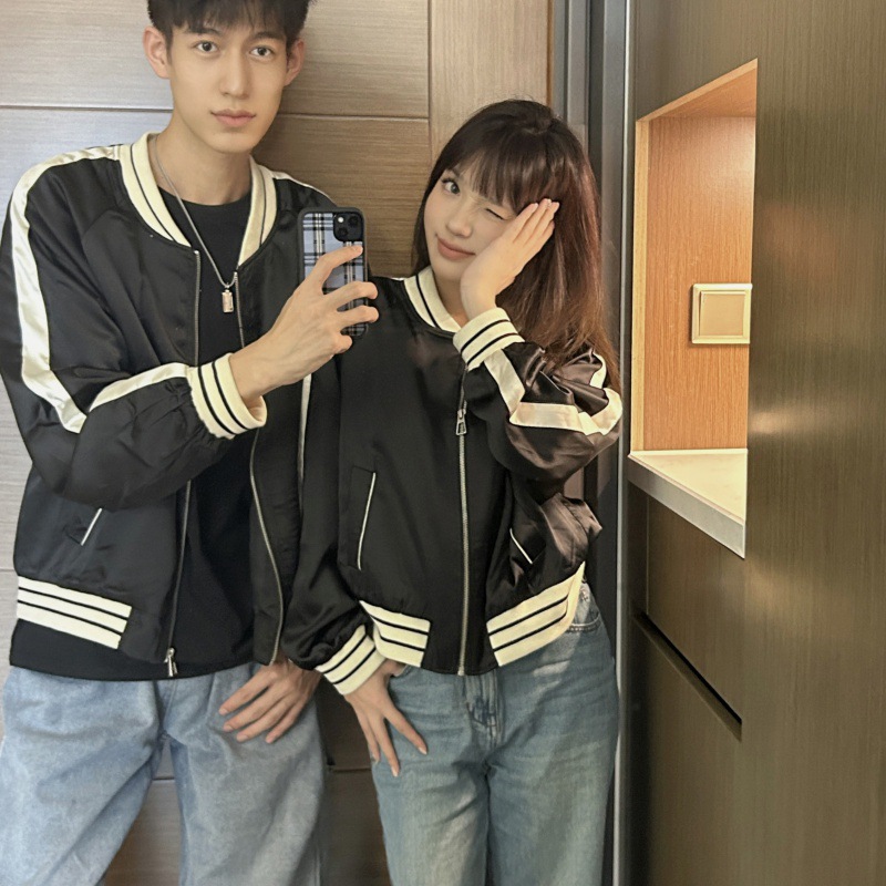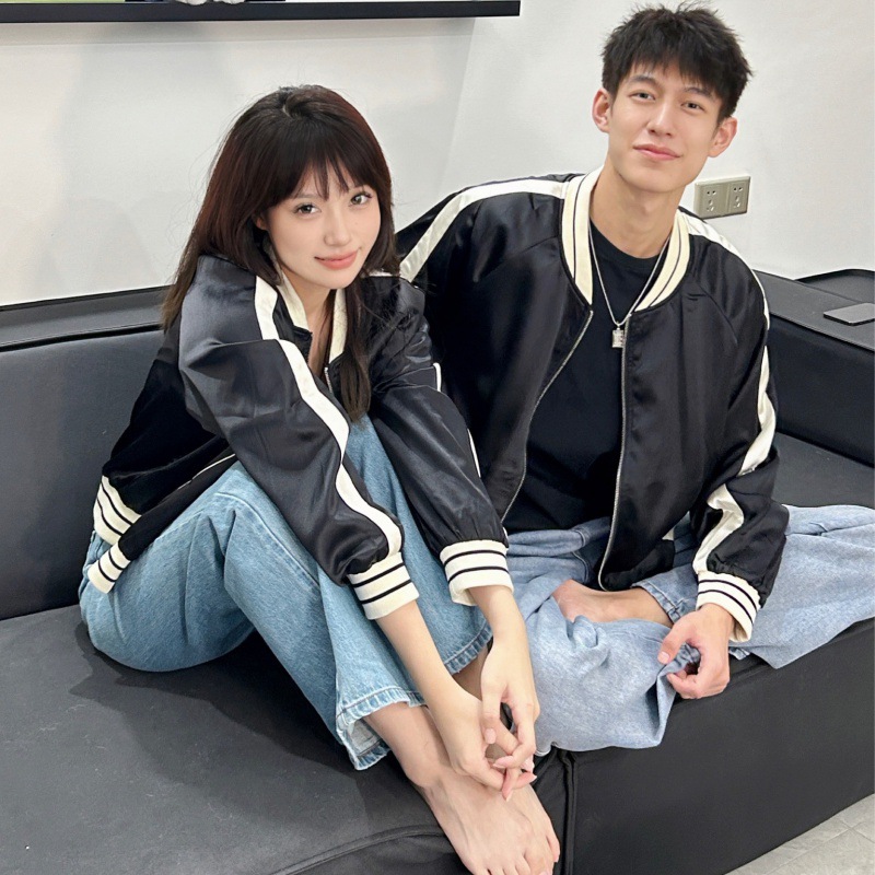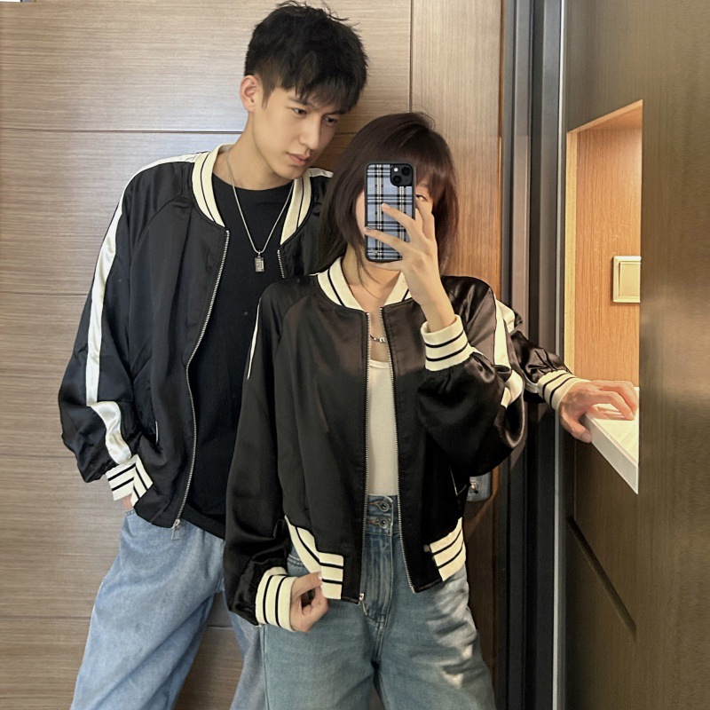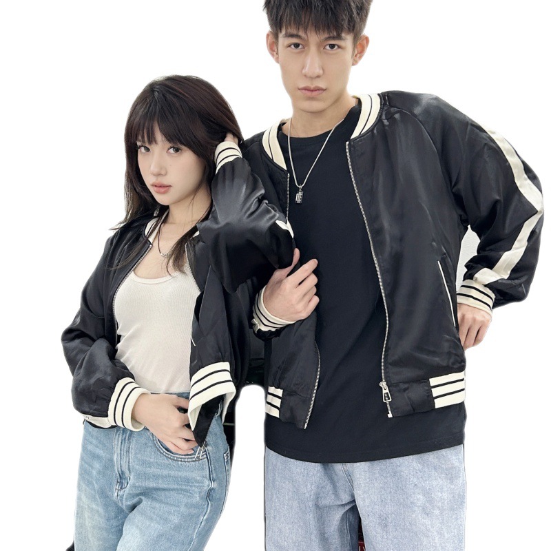 | nameOriginal | One-piece delivery 2023 real shot Spring and Autumn college style couple wear simple high quality satin fabric baseball uniform top |