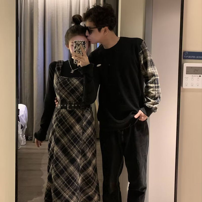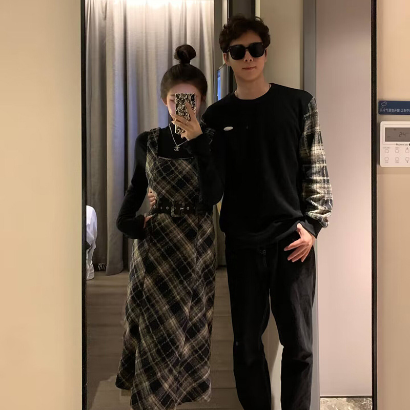 | nameOriginal | One-piece delivery 2024 real shot couple clothes spring new two-piece women's one-piece dress one-piece Men's fake two-piece sweater |