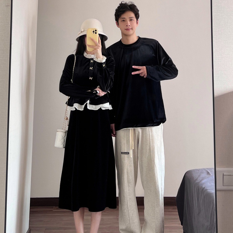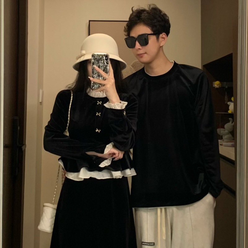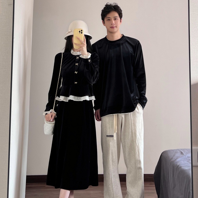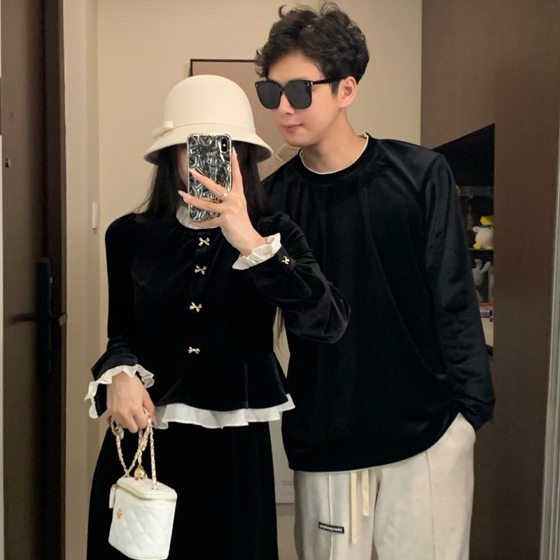 | nameOriginal | One-piece delivery 2024 real shot spring new fake two-piece socialite elegant velvet dress stitching men's long sleeve |