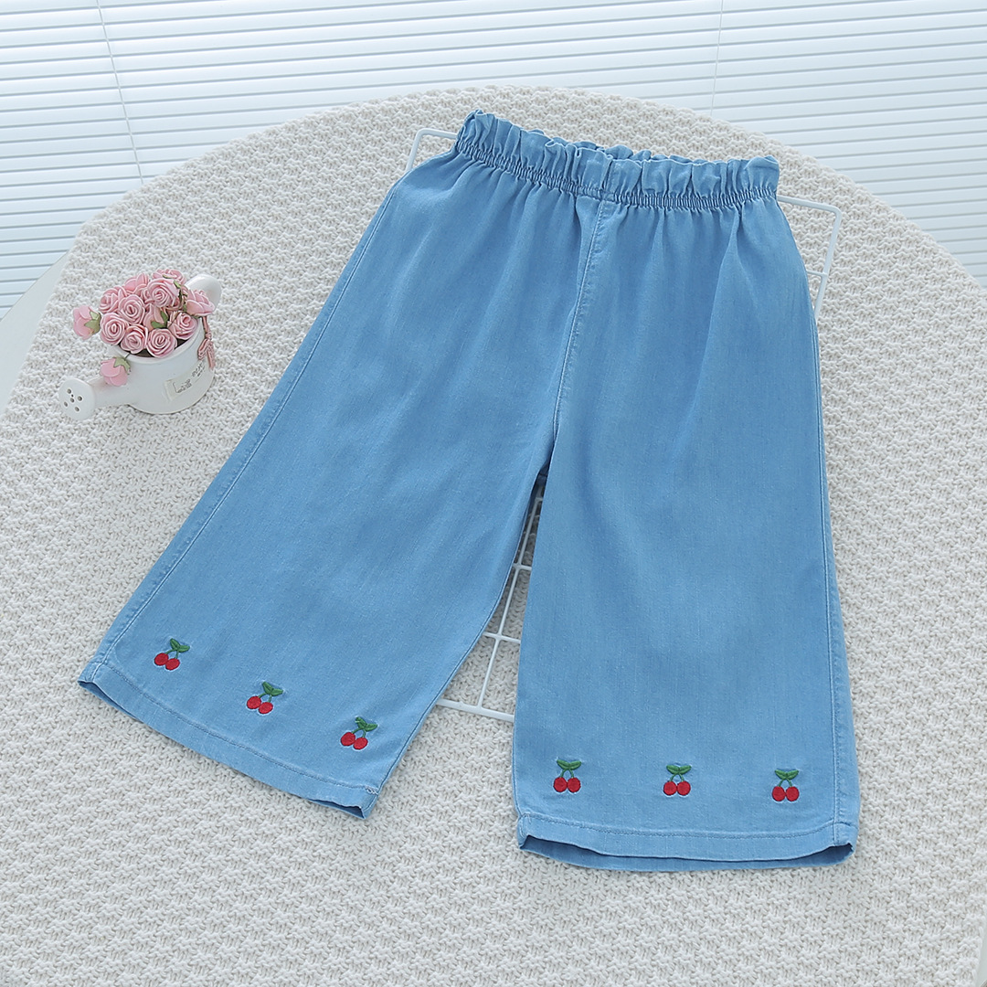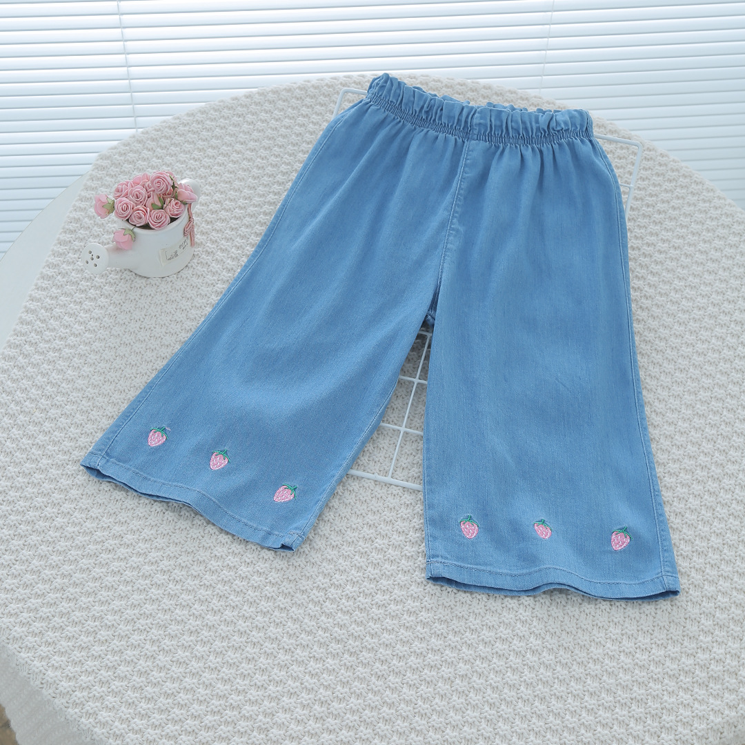 | nameOriginal | One-piece delivery 2024 Summer new medium and large children girls' tencel jeans mosquito-proof pants cropped wide-leg pants |