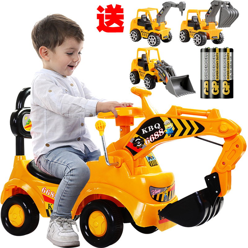 One-piece delivery Children's large swing car excavator can sit and ride baby toy music engineering car excavator