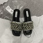 | nameOriginal | One-piece European and American style rivet square toe open toe slippers |
