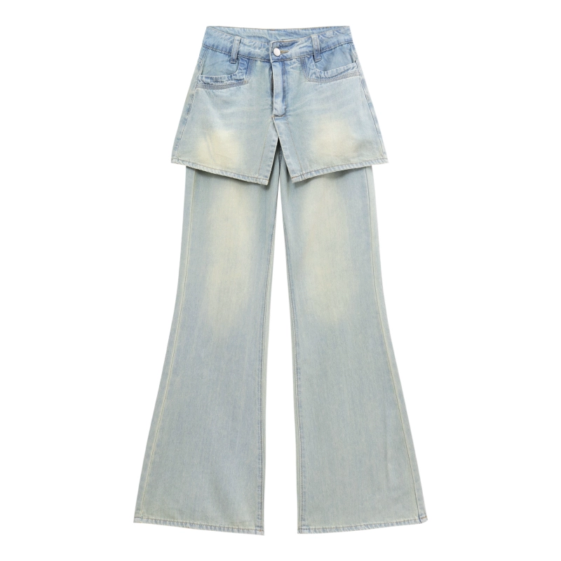 One-piece micro-flare high-waist trousers fake two-piece