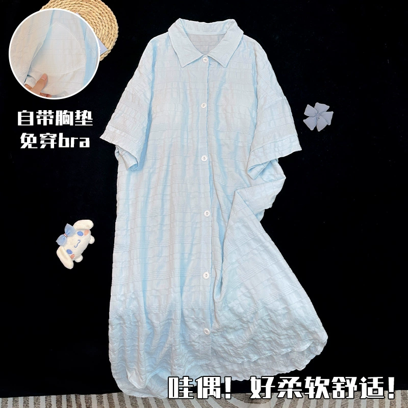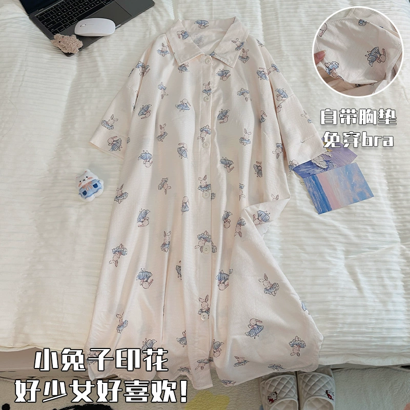 | nameOriginal | One-piece nightgown with breast pad for women summer Korean style simple short-sleeved shirt dress can be worn outside loose pajamas home clothes |