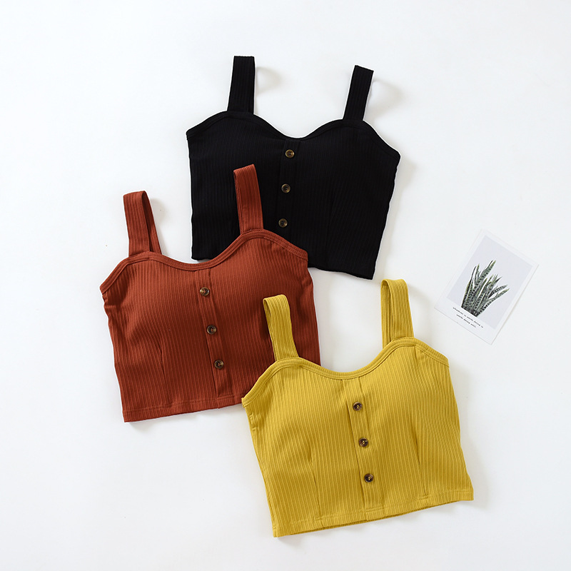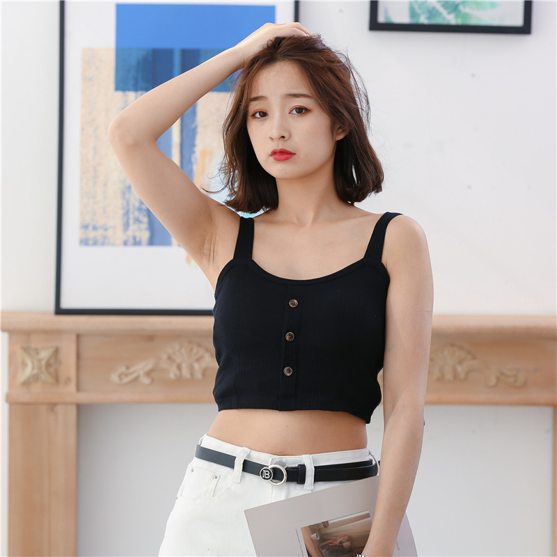 | nameOriginal | One-piece Short Button Wide Shoulder Sling Cup with Chest Pad Women's Summer Outward Half Retro Vest |