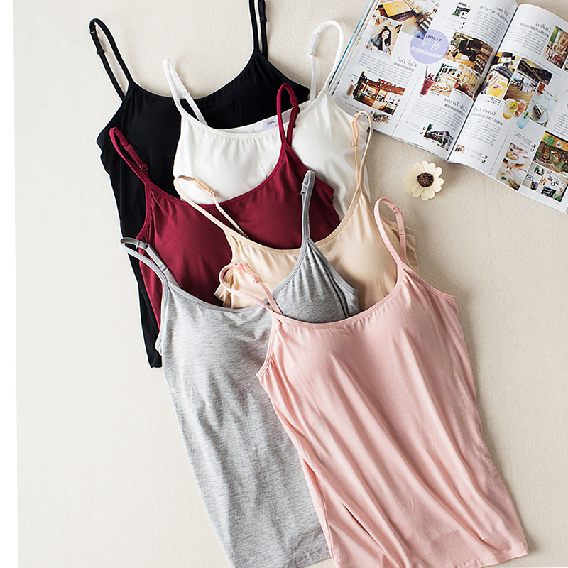 One-piece Small Camisole Women’s Short Bra Underwear Outer Wear Inner Top with Chest Pad Suspenders