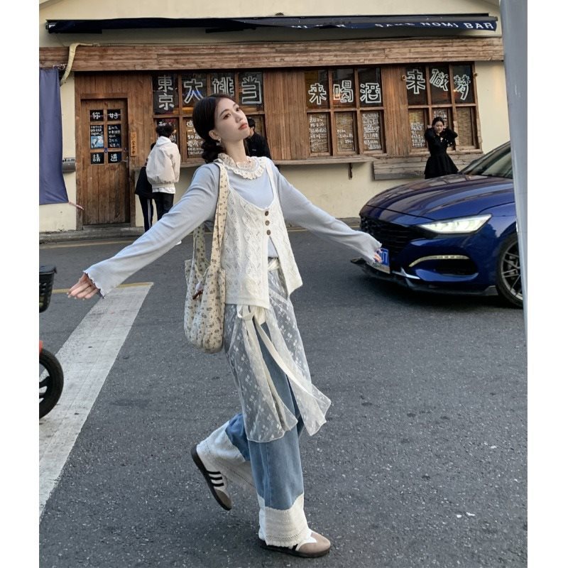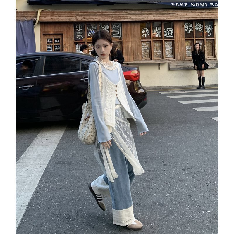One-piece Strap Mesh Apron Skirt Women's Summer 2024 New Arrival Stacked Artifact Floral All-match Fart Curtain