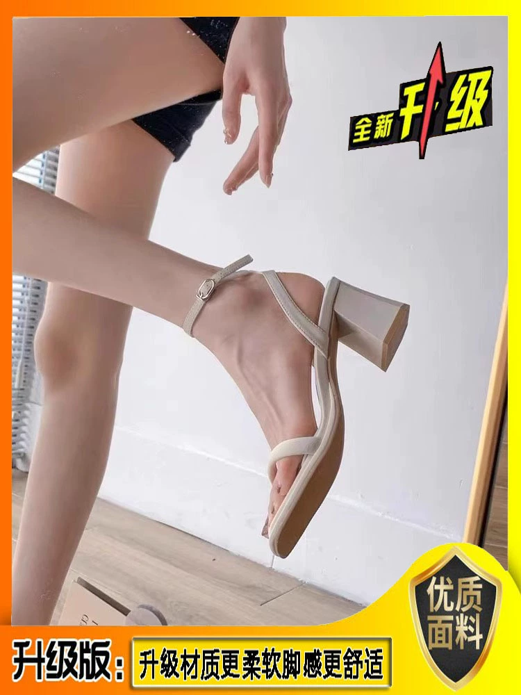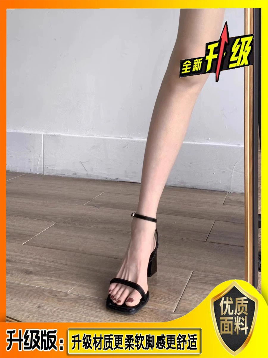 | nameOriginal | One-piece strappy fat wide black block heels with skirt sandals |
