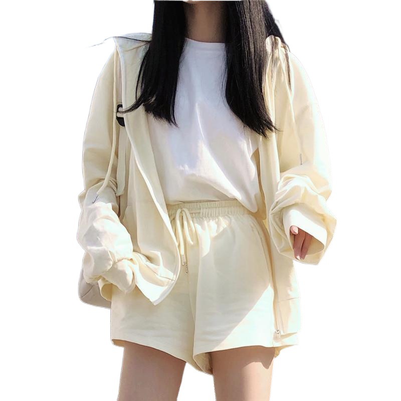 | nameOriginal | One-piece/suit Casual Sports suit Women's Summer and Autumn New Hooded Zipper Jacket Shorts suit Two-piece Set |