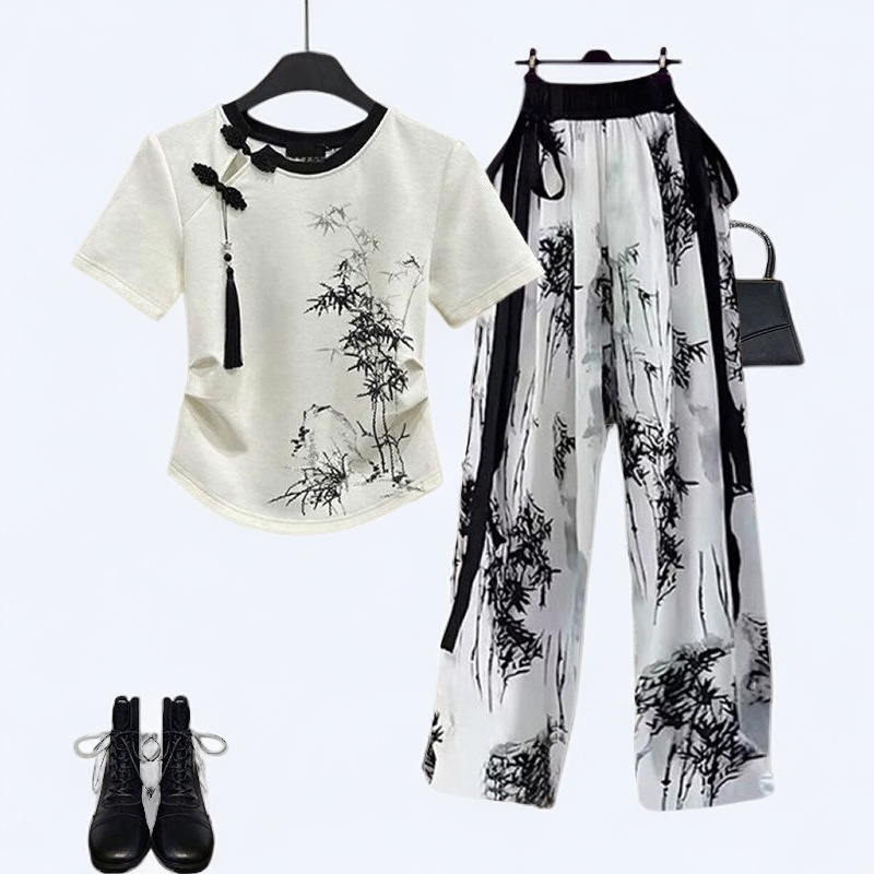 One Piece suit New Chinese Style 2024 Super Fairy National Style Button T-shirt Super Cute Slim Look Small Fresh and Fashionable