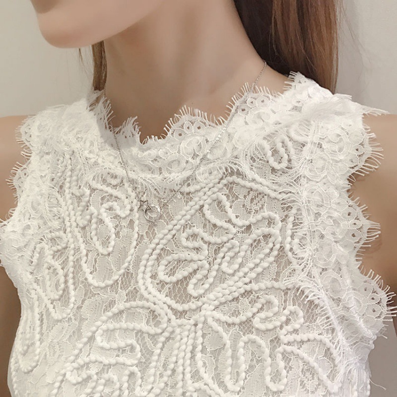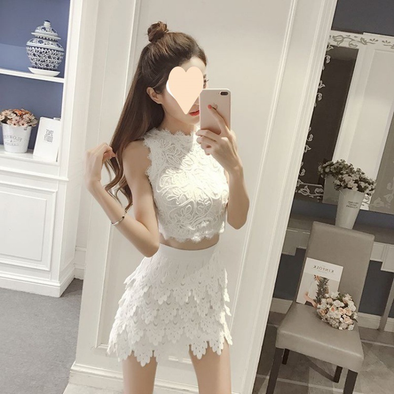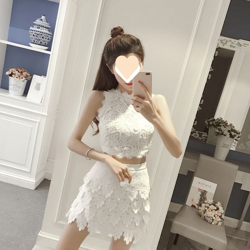 One-piece/suit Optional Fashion Hanging Neck Three-dimensional Lace Shoulder Top High Waist Solid Color Culottes suit Women