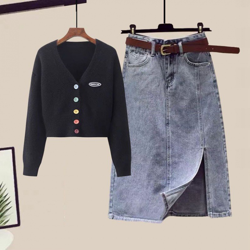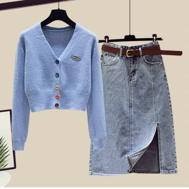 | nameOriginal | One-piece/suit Spring Denim Dress Women's 2024 New Fashion Sweater Knitted Shirt Skirt Two-piece Set |