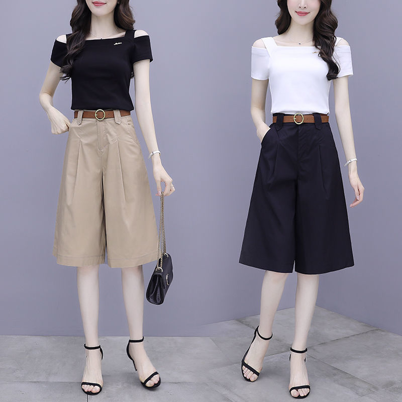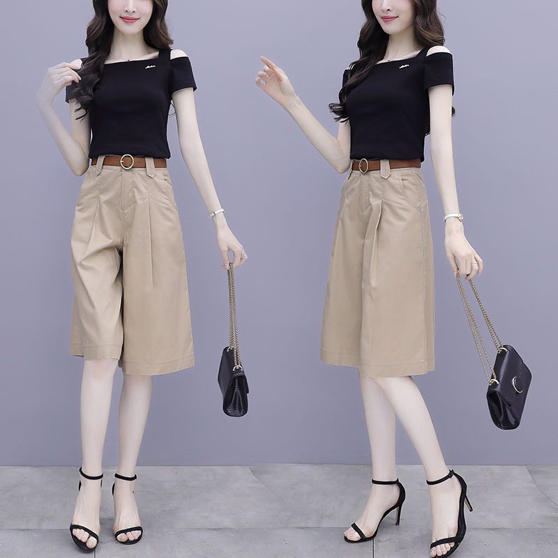 | nameOriginal | One-piece/suit Wide-leg Pants suit Women's Summer 2024 New Stylish Age-reducing Fashionable Slimming Capri Pants Two-piece Set |