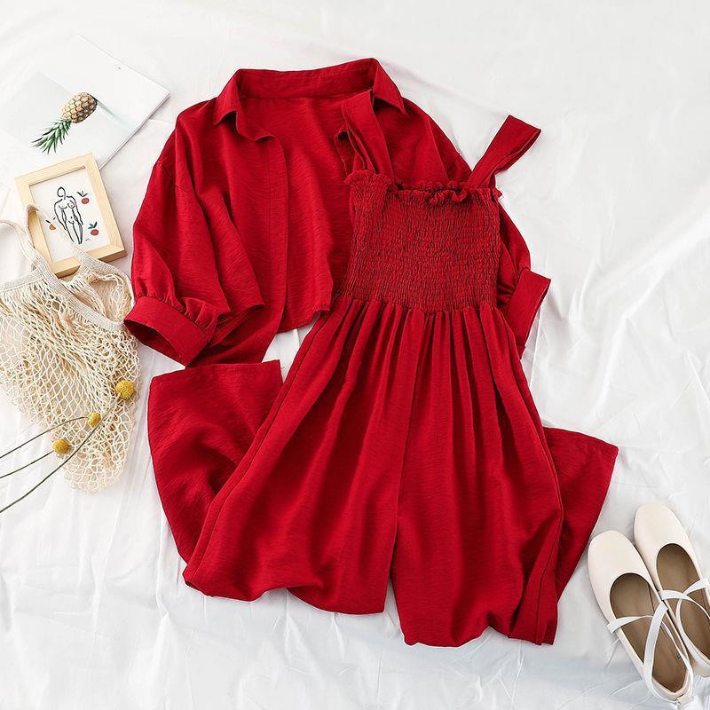 | nameOriginal | One-piece suit Women's One-piece Pants Students Korean-style Loose Spring and Summer Sunscreen Shirt Sling Pants Two-piece Pants |