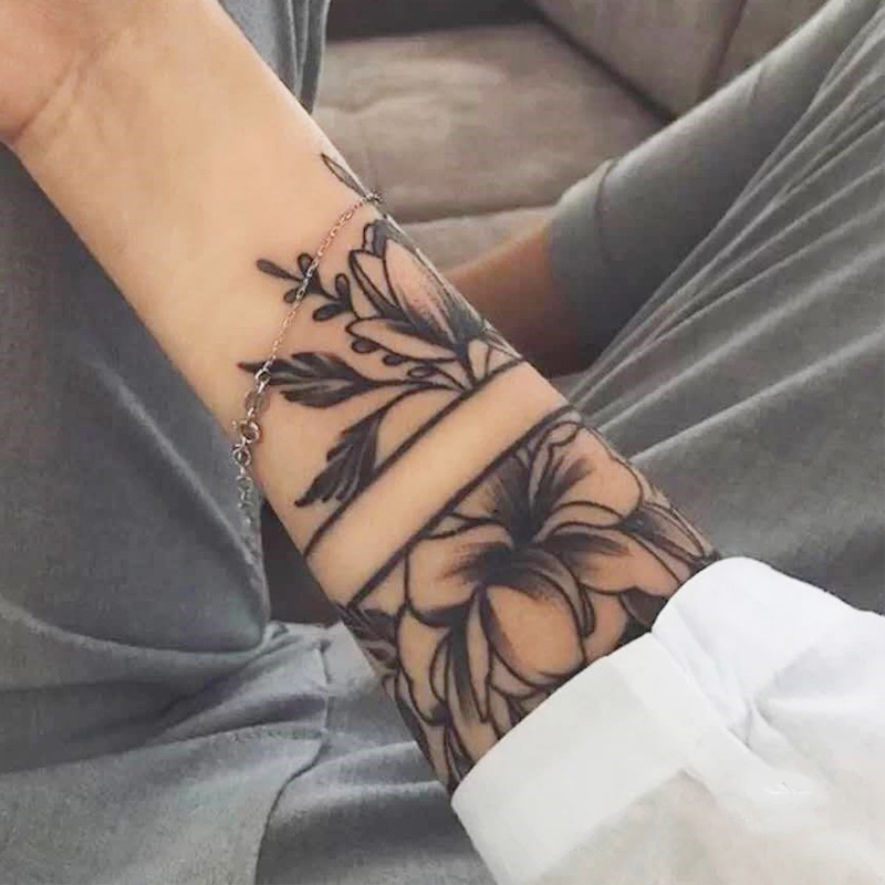 [One set of 2 sheets] Armband plain flower tattoo on arm, forearm, waterproof, long-lasting, ins style simulation large pattern for women