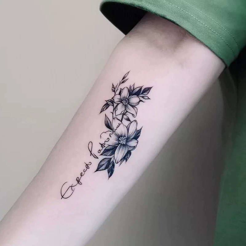 [One set of 2 sheets] Plain flower tattoo stickers on forearm English letters waterproof female long-lasting ins style simulated arm vibrato