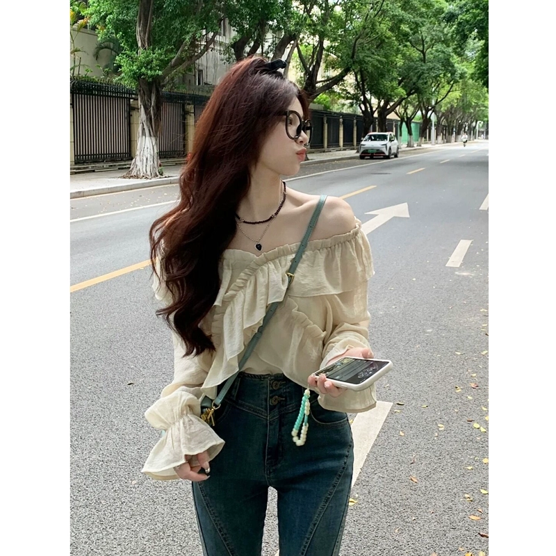 | nameOriginal | One-shoulder early autumn ruffled trumpet sleeve loose shirt |
