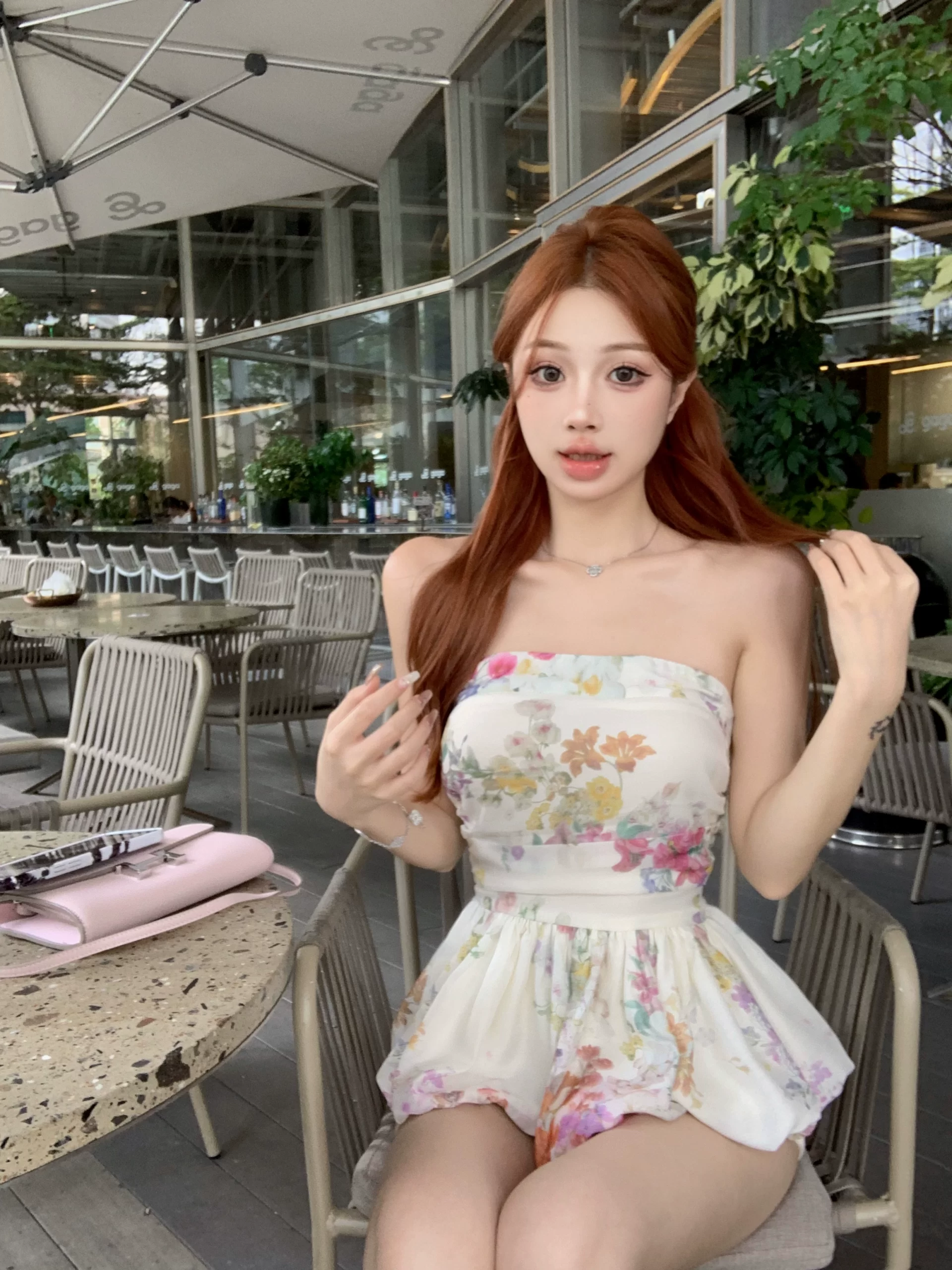 | nameOriginal | One shoulder floral women's summer pleated slim tube top |