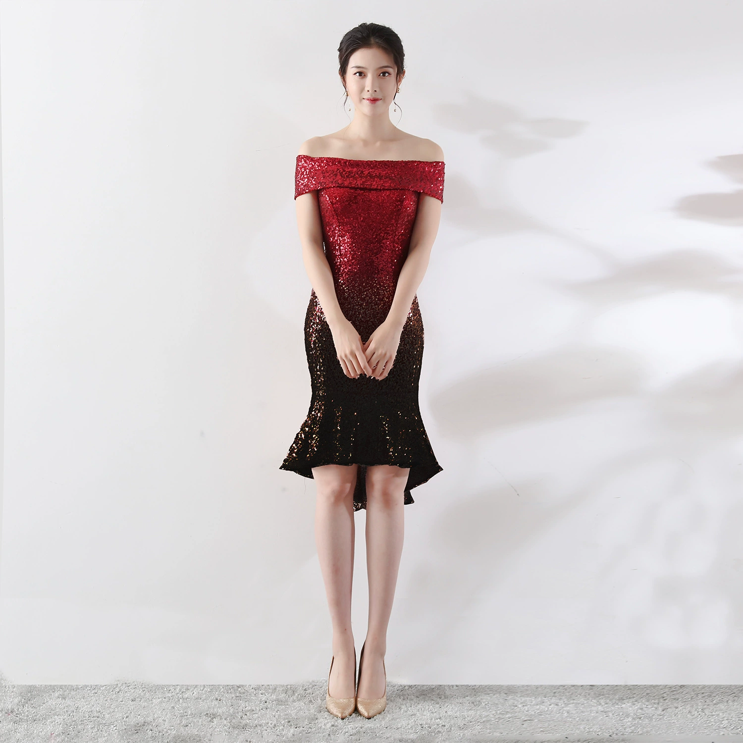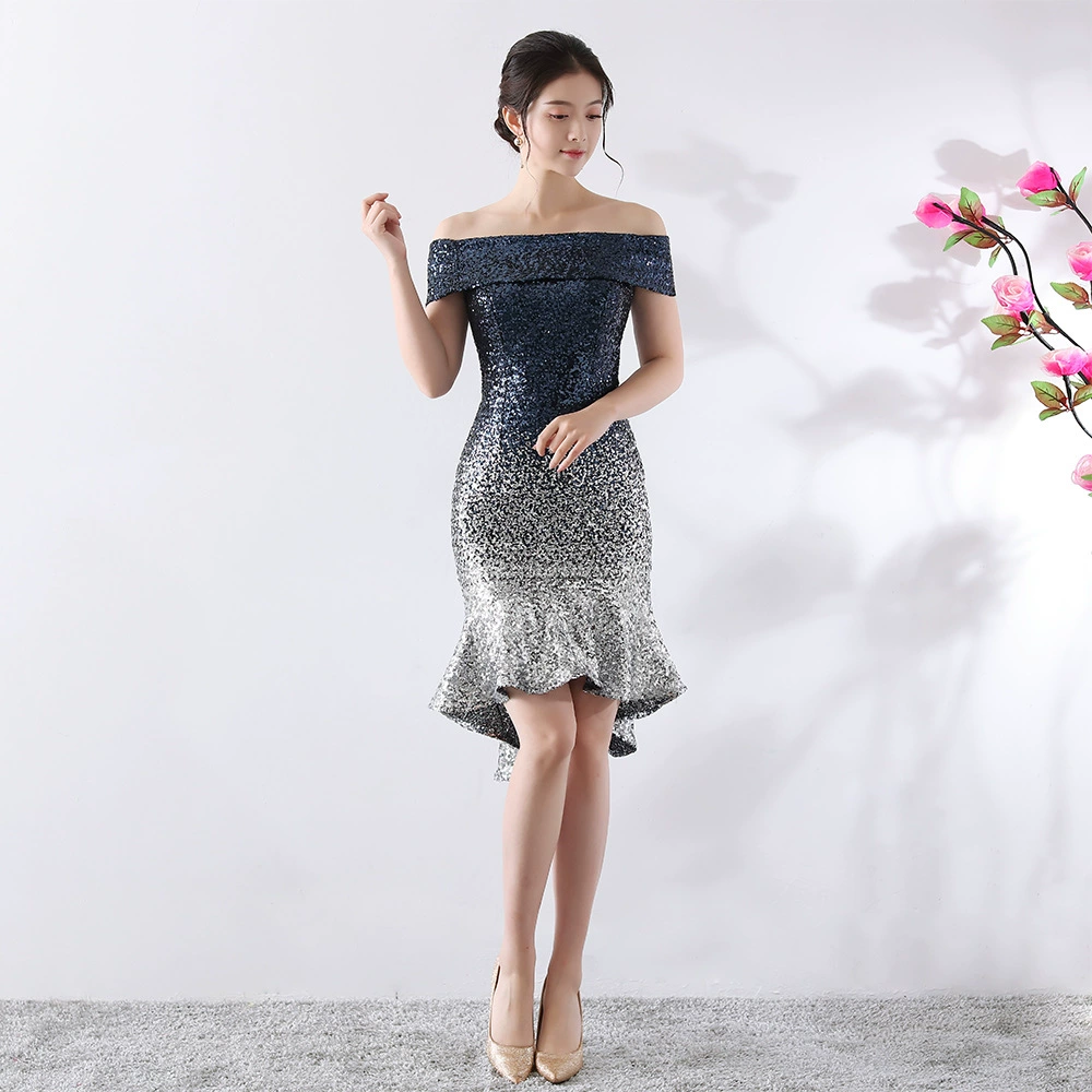 | nameOriginal | One shoulder niche fishtail host party performance sequins |