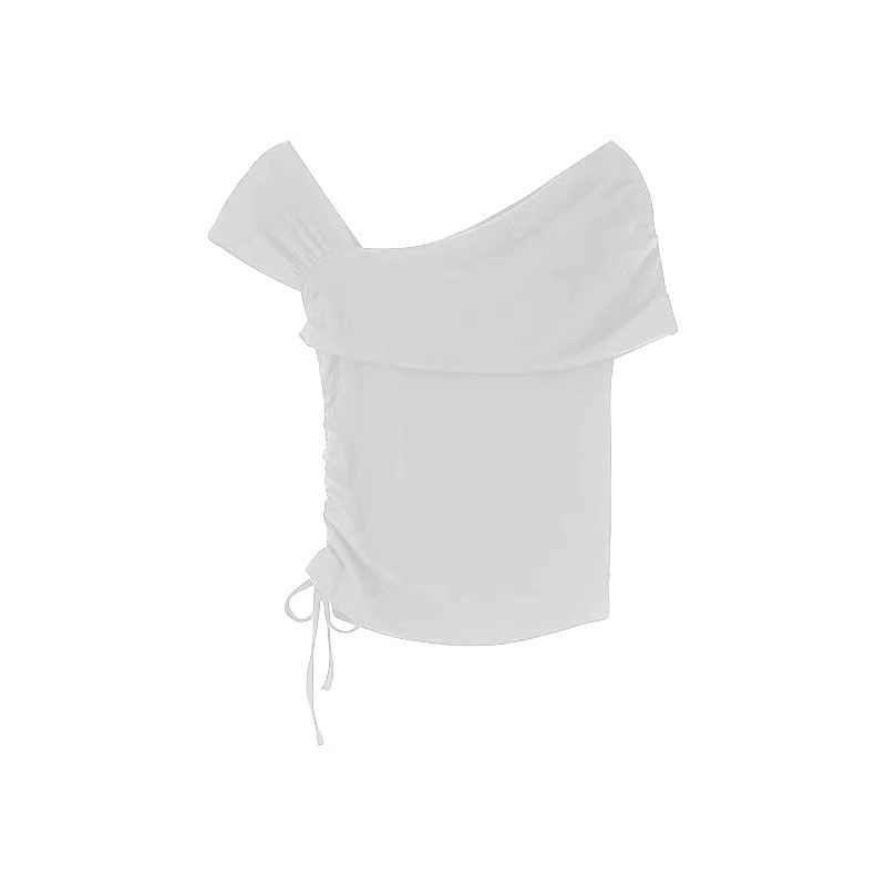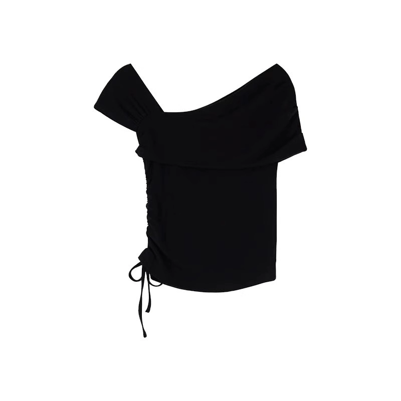 | nameOriginal | One shoulder pure desire style irregular pinch waist short sleeve t-shirt |