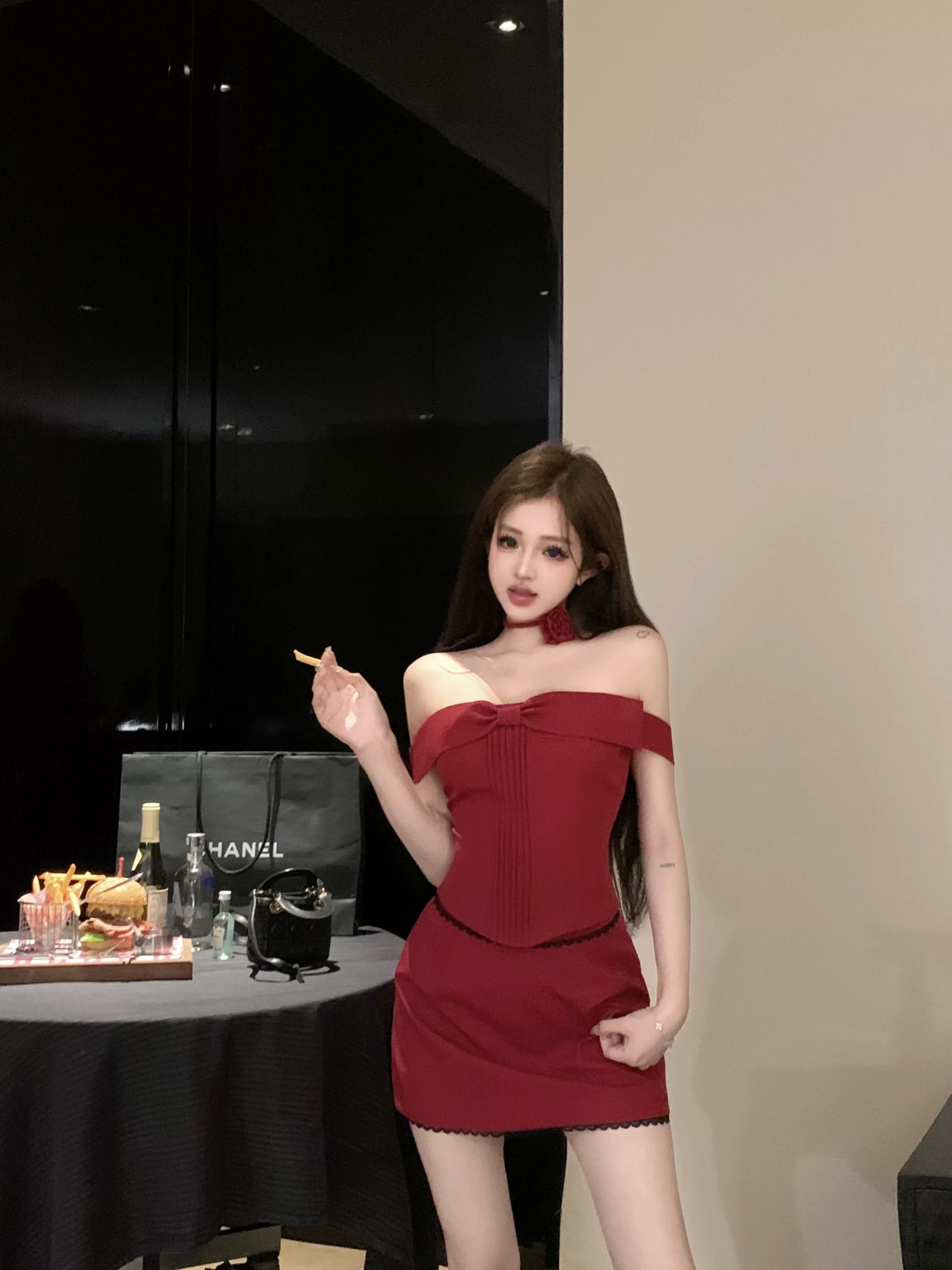 | nameOriginal | One-shoulder red tube top women's summer two-piece flower set |
