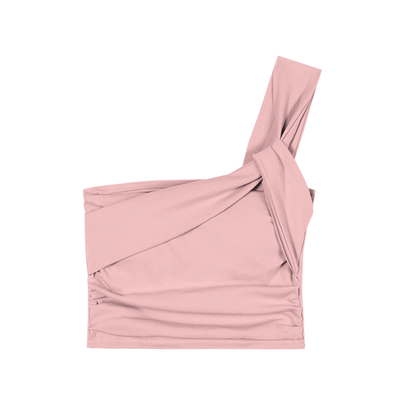 | nameOriginal | One-shoulder sexy pleated pink sleeveless vest |