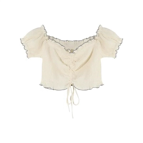 | nameOriginal | One-shoulder slim-fit earring strap short-sleeved T-shirt |