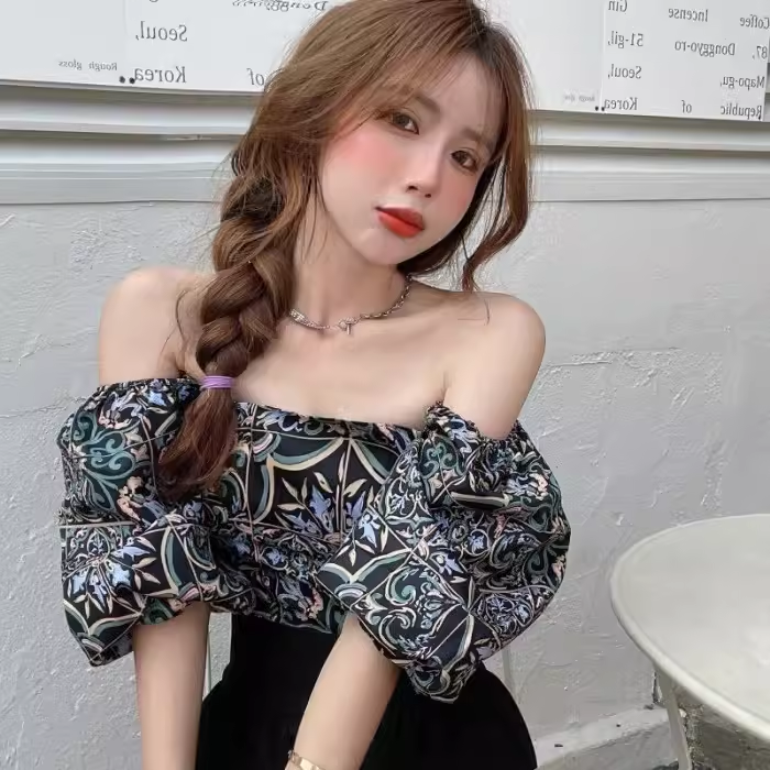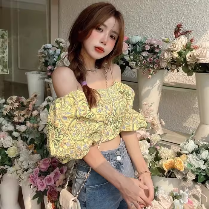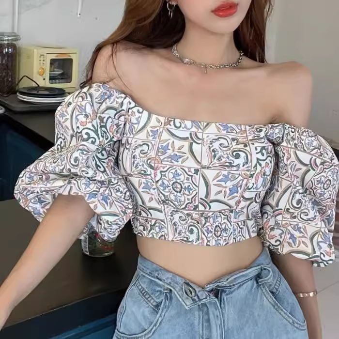 | nameOriginal | One shoulder square collar women's short retro top shirt |