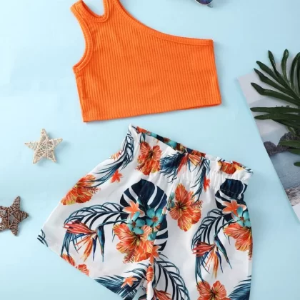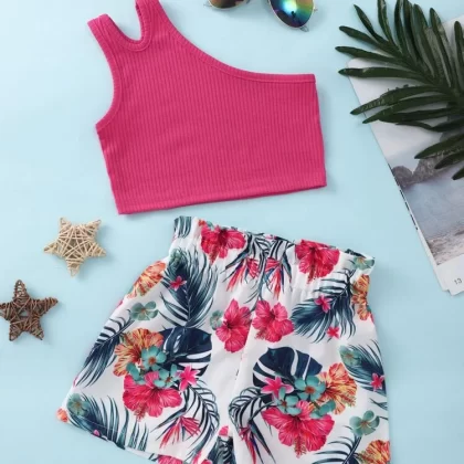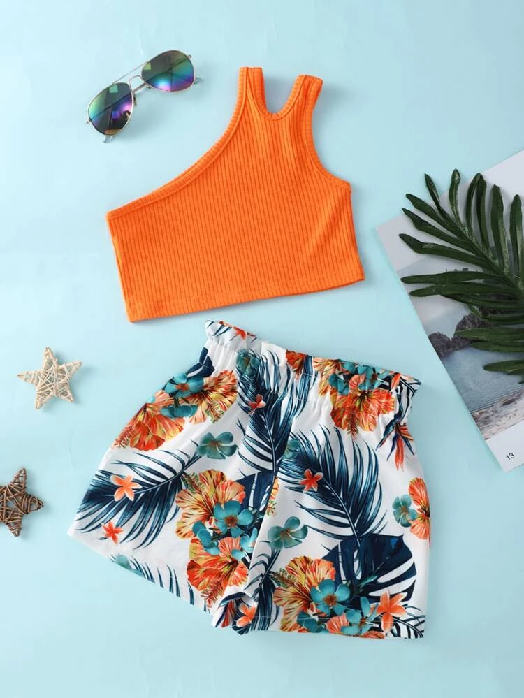 | nameOriginal | Toddler Girls One Shoulder Cut Out Top & Tropical Print Shorts |