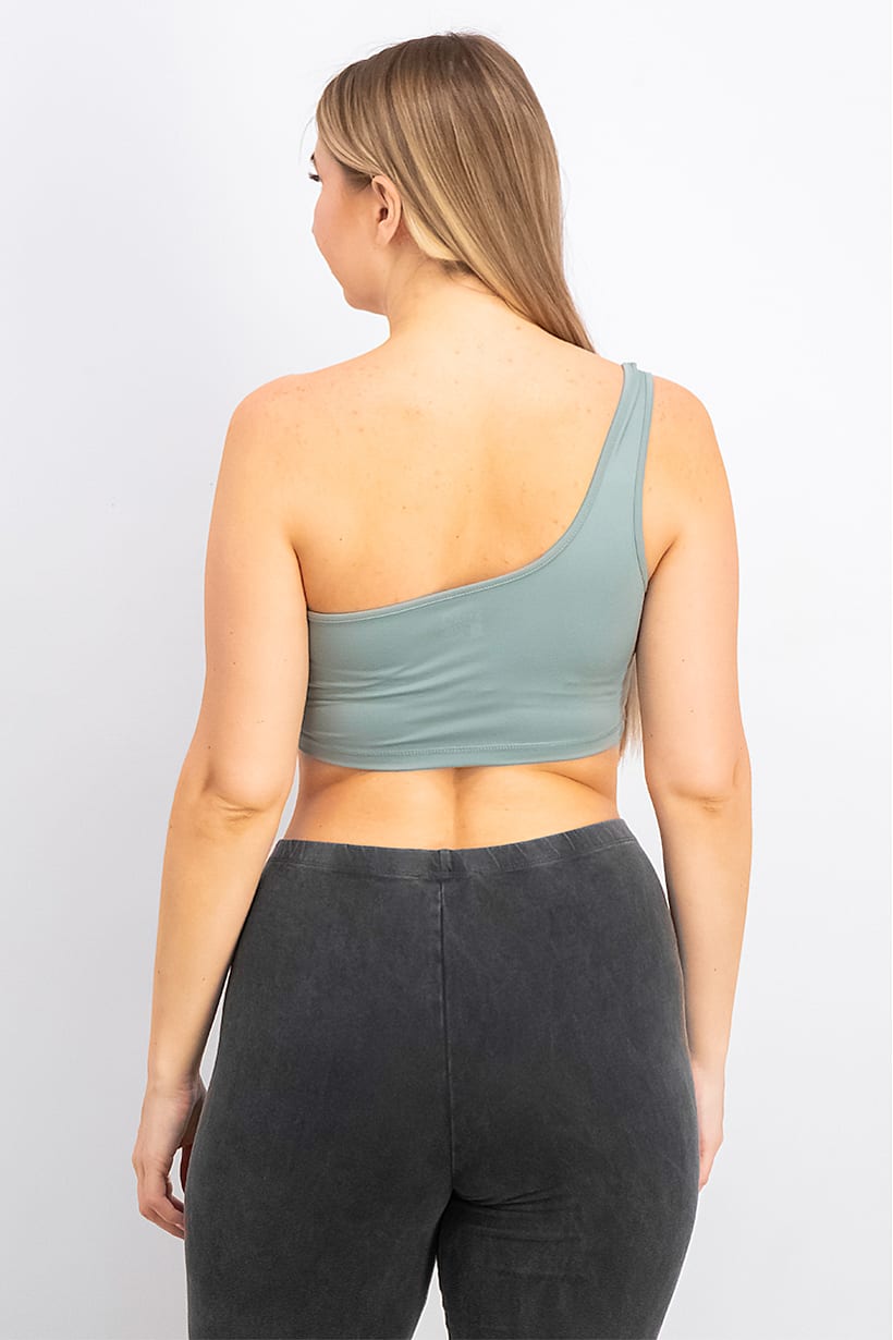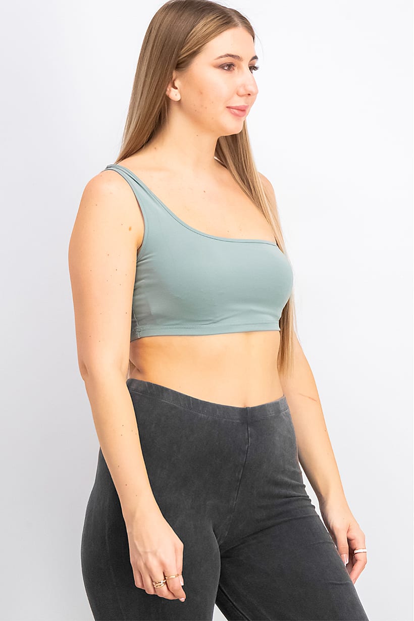 | sub_Categories | Women Clothing, Sportswear, women sportswear fit plain one shoulder top tea olive |