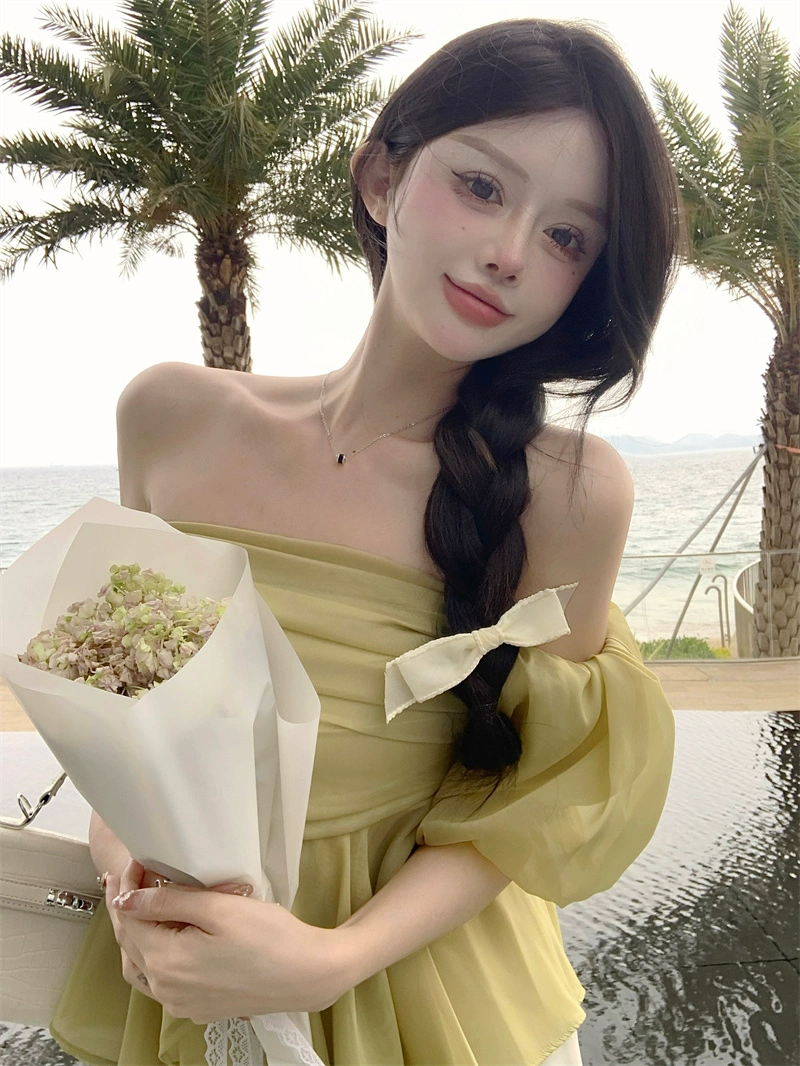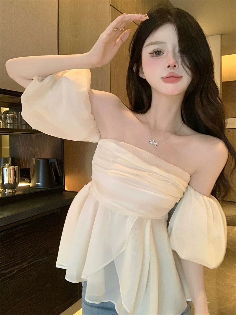 | nameOriginal | One shoulder women's summer waist slimming chiffon shirt |