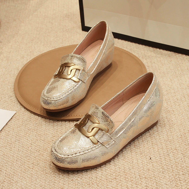 One-slip-on height-increasing small size wedge heel comfortable beanie shoes