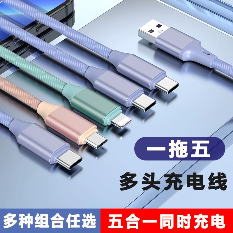 | nameOriginal | One to five three-in-one 66w fast charging data cable suitable for 3Typec Huawei mate3040 Xiaomi 5 Apple mobile phone charging multi-function multi-head 5 Android USB plug fast charger cable |