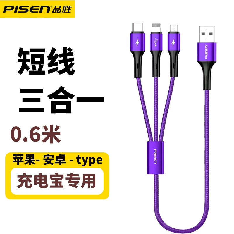 One-to-three fast charging data cable short power bank suitable for Apple 8plus Huawei typec Android oppo Xiaomi vivo Samsung Meizu mobile phone car three-in-one charging cable extension
