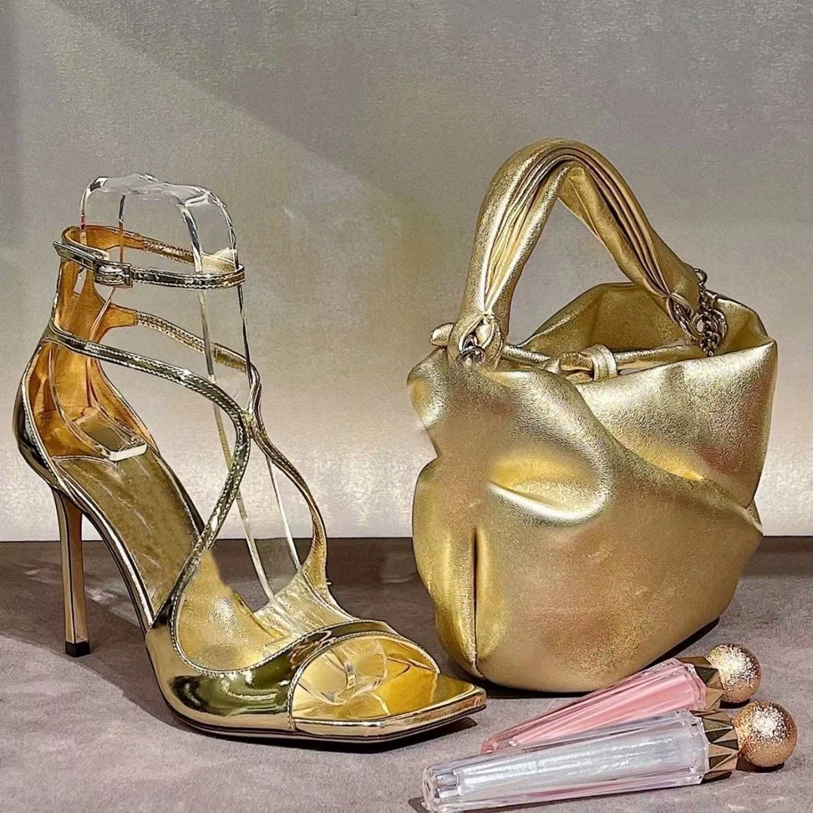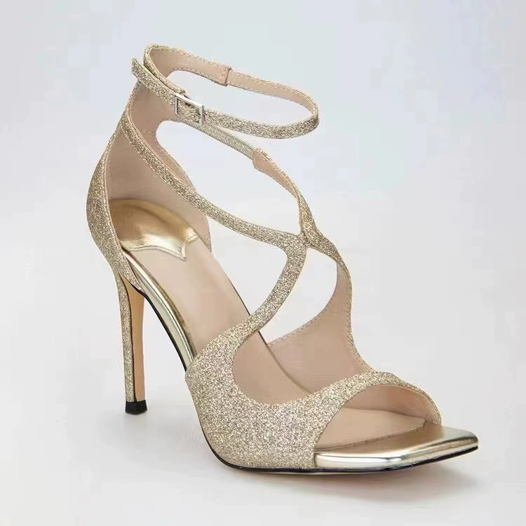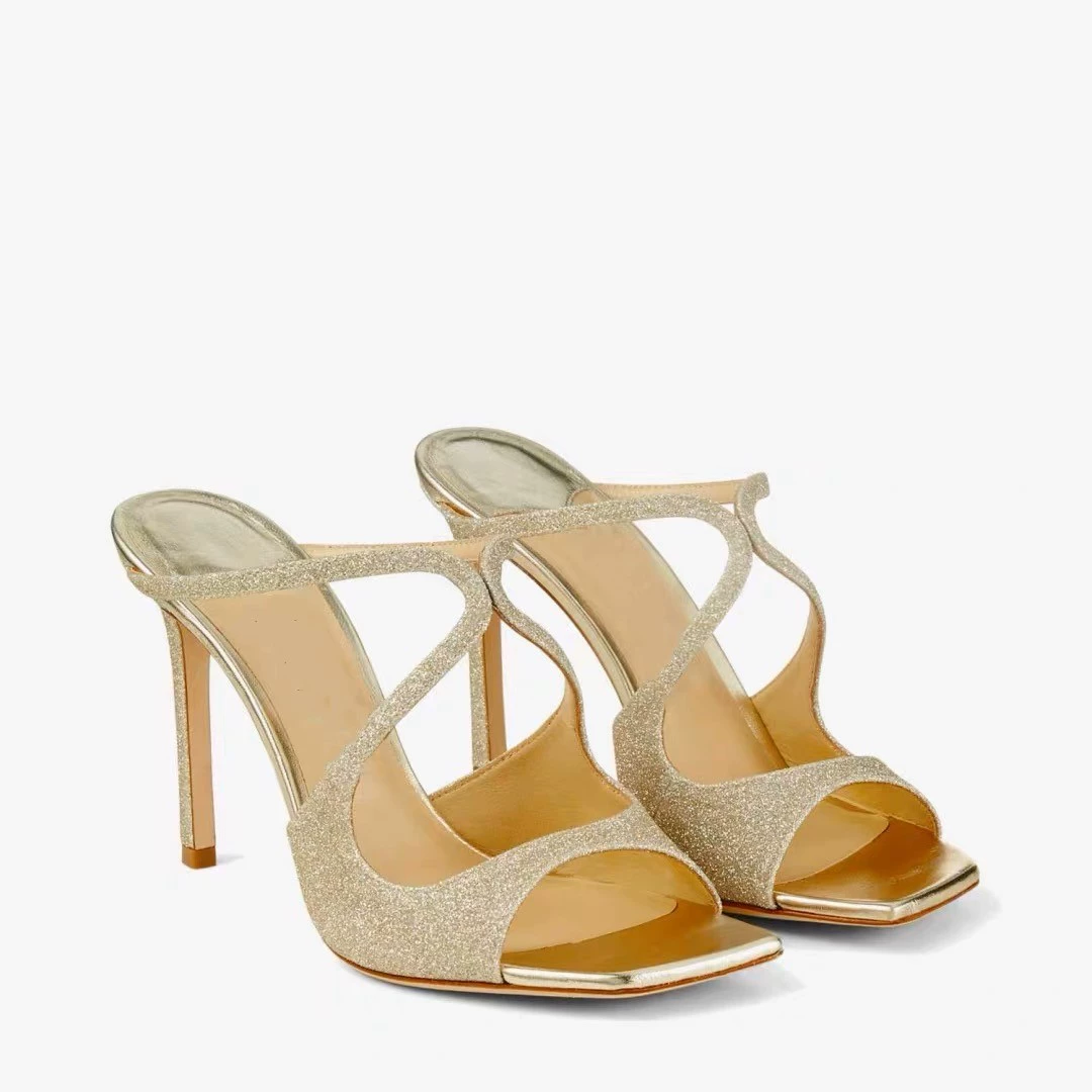 One-word buckle strap square toe sandals for women 2024 summer new style Internet celebrity fish mouth gold stiletto open toe sexy high heels