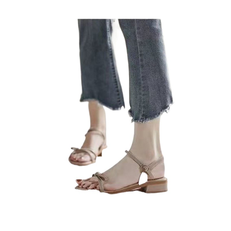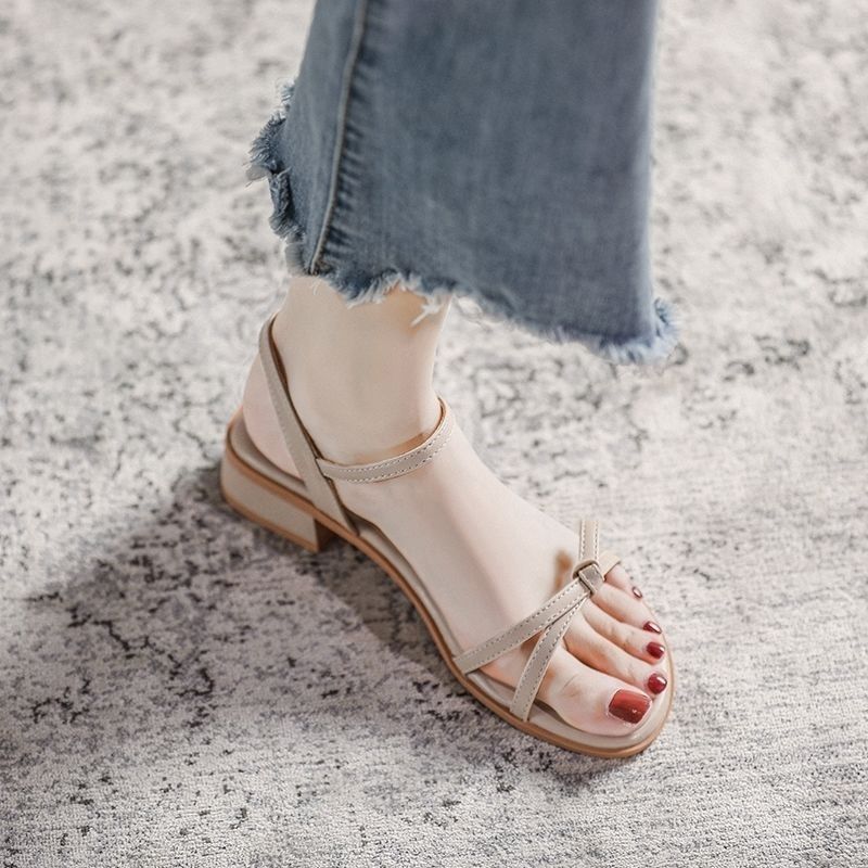 One-word Sandals with 2024 Women’s Summer New Thick Heel All-match Mid-heel Dress Niche Simple Outwear Fairy